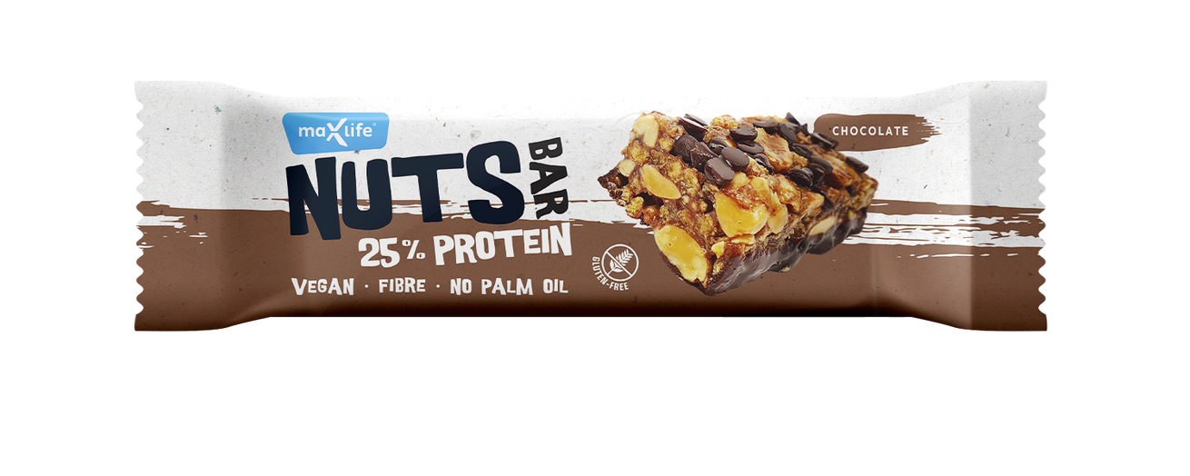 BATON PROTEINOWY 25 % Z ORZECHAMI CZEKOLADOWY BEZGLUTENOWY 40 g - MAXSPORT