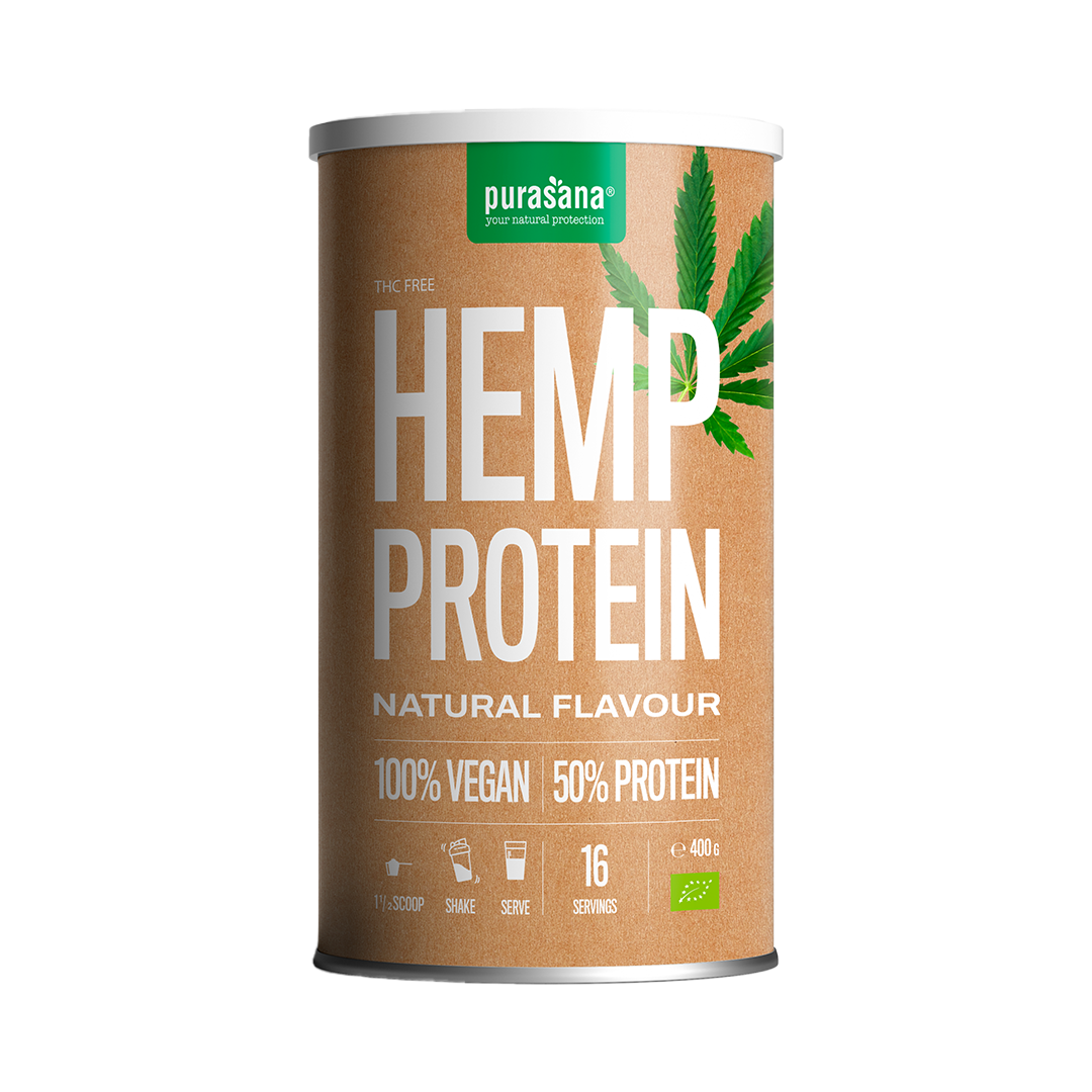 Wegański 100 % proszek z konopi zawiera 50 % białka, naturalnie bogaty w niezbędne aminokwasy. Średnia porcja zawiera 17 g białka. Białko pomaga w utrzymaniu masy mięśniowej. Wysokiej jakości białko z nasion tłoczonych na zimno.