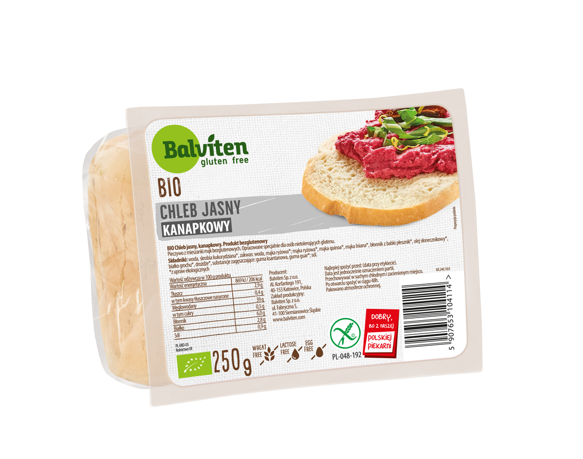 CHLEB JASNY KANAPKOWY BEZGLUTENOWY BIO 250 g - BALVITEN