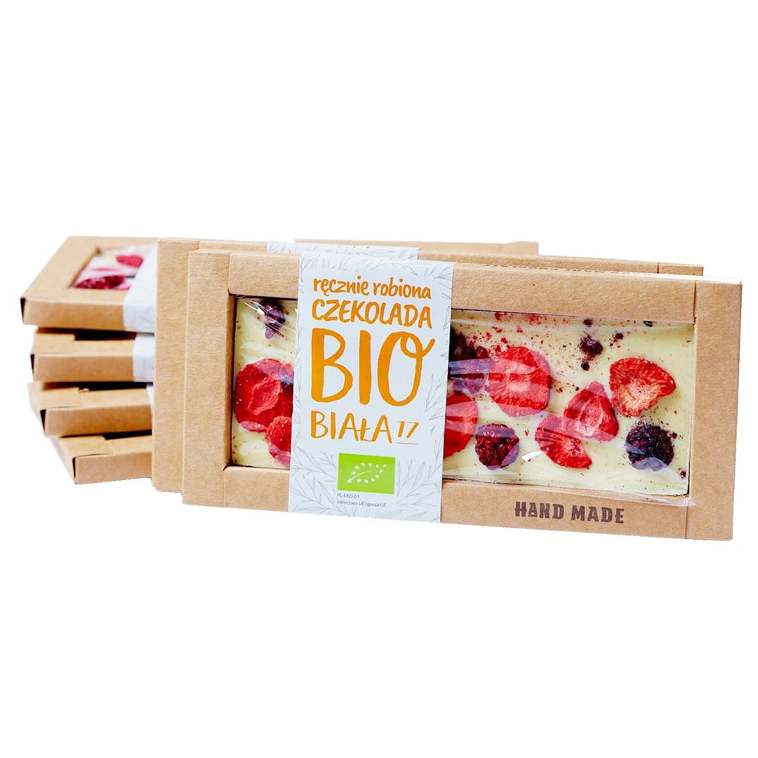 CZEKOLADA BIAŁA Z TRUSKAWKAMI I JEŻYNAMI BIO 53 g - CUKIERNIA STAROPOLSKA