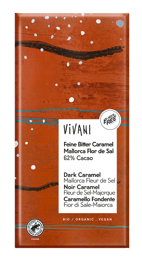 CZEKOLADA GORZKA Z KAWAŁKAMI KARMELU I SOLĄ MORSKĄ Z MAJORKI BIO 80 g - VIVANI