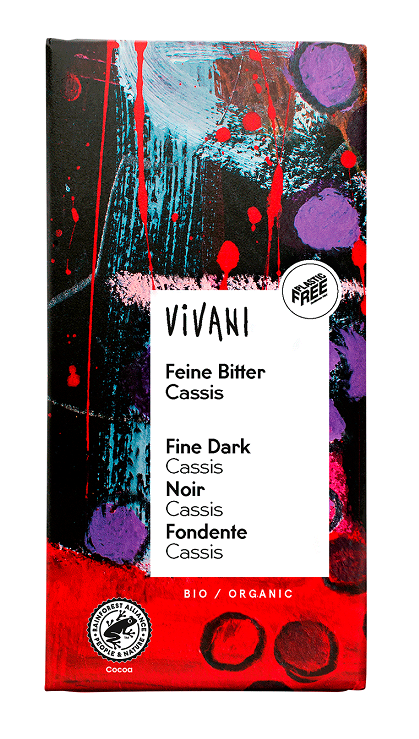 CZEKOLADA GORZKA Z NADZIENIEM O SMAKU CZARNEJ PORZECZKI BIO 100 g -VIVANI