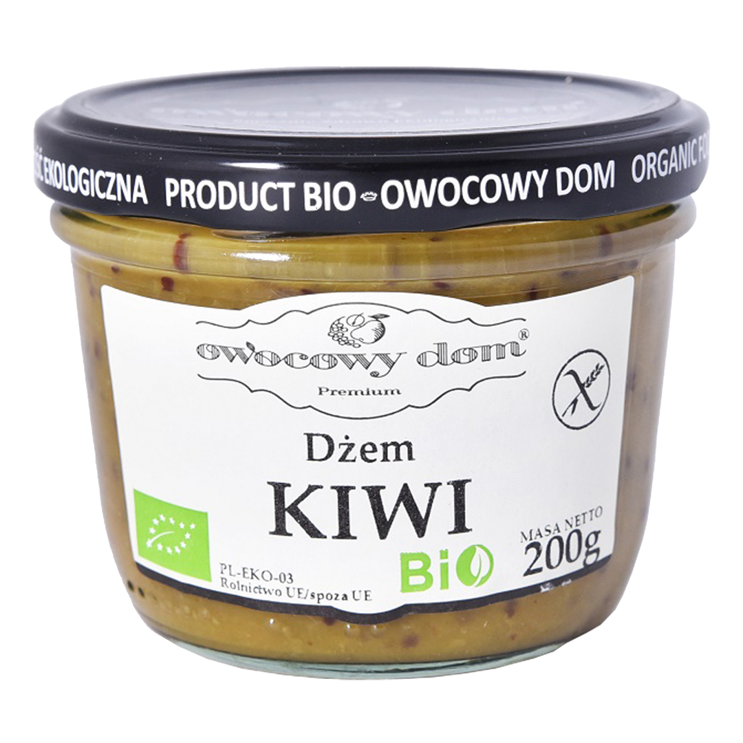 Ekologiczny dżem z kiwi, pasteryzowany o obniżonej zawartości cukru. Dżem niskosłodzony to lepsza, zdrowsza alternatywa dla dżemów w pełni słodzonych. Można nie tylko smarować nim chleb albo domowe gofry, lecz także dodawać do deserów, czy też nadziewać nim naleśniki.