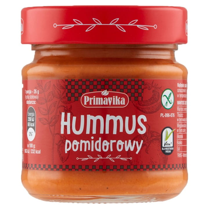 HUMMUS POMIDOROWY BEZGLUTENOWY 160 g - PRIMAVIKA