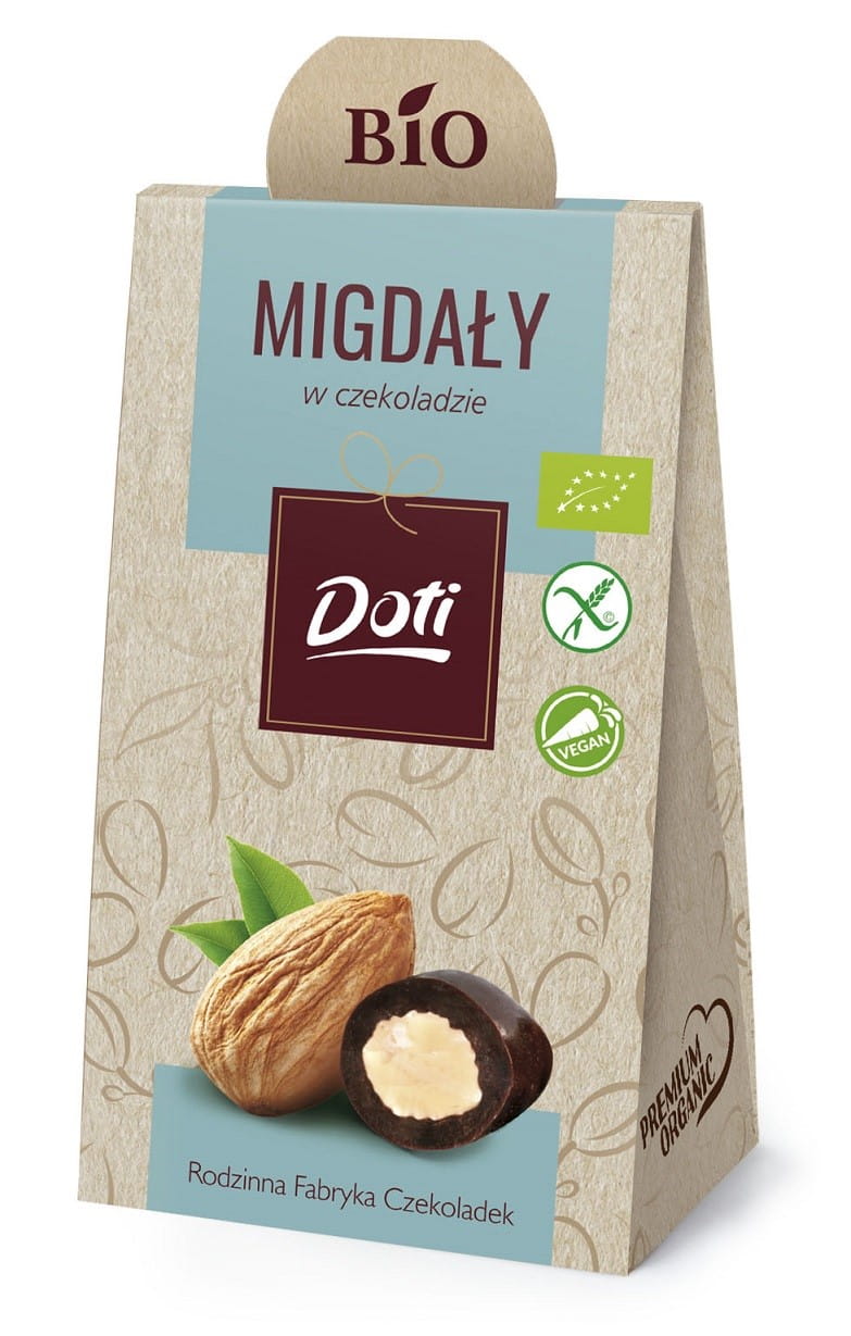 MIGDAŁY W CZEKOLADZIE GORZKIEJ BEZGLUTENOWE BIO 50 g - DOTI
