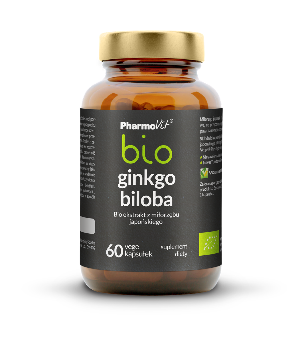 MIŁORZĄB JAPOŃSKI (GINKGO BILOBA) EKSTRAKT BEZGLUTENOWY BIO (100 mg) 60 KAPSUŁEK - PHARMOVIT