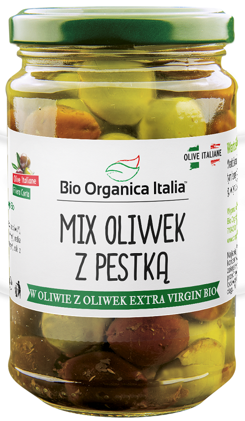 MIX OLIWEK Z PESTKĄ W OLIWIE Z OLIWEK EXTRA VIRGIN BIO 280 g (SŁOIK) - BIO ORGANICA ITALIA