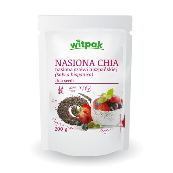 Nasiona szałwii hiszpańskiej (Salvia hispanica) popularnie nazywanej nasionami Chia to wspaniały dodatek do śniadaniowych propozycji zbożowych, wypieków (pieczywa), mieszanek owoców, orzechów i nasion. Dzienne spożycie nasion Chia (szałwii hiszpańskiej) nie powinno wynosić więcej niż 15 g.