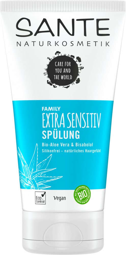 Odżywka SANTE FAMILY Extra Sensitive z organicznym aloesem jest szczególnie odpowiednia dla skóry wrażliwej (skóry głowy) i zapewnia włosom intensywne nawilżenie.