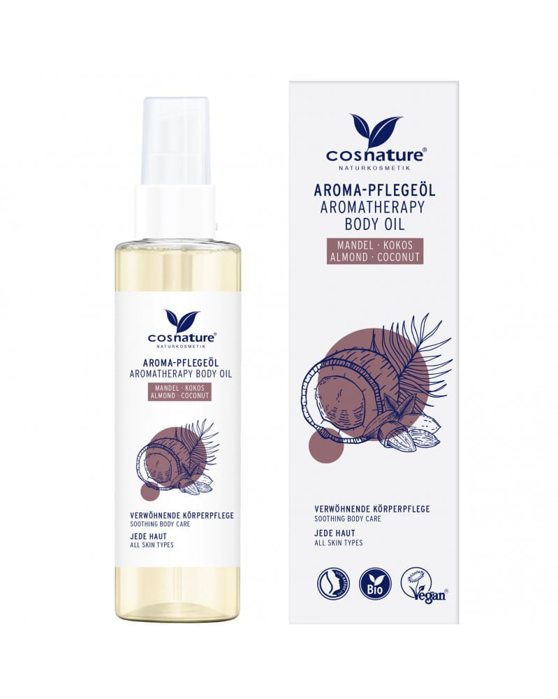 Naturalny aromaterapeutyczny migdałowo-kokosowy olejek do pielęgnacji ciała rozpieszcza skórę, nadaje jej przyjemną aksamitną gładkość i chroni przed wysuszeniem.