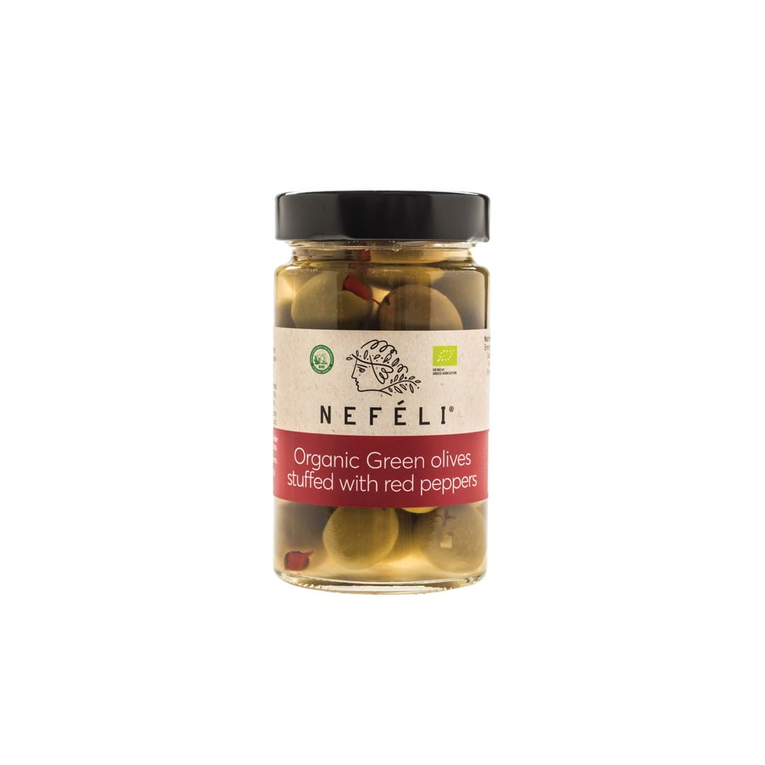 OLIWKI ZIELONE NADZIEWANE CZERWONĄ PAPRYKĄ W ZALEWIE BIO 300 g (165 g) - NEFELI