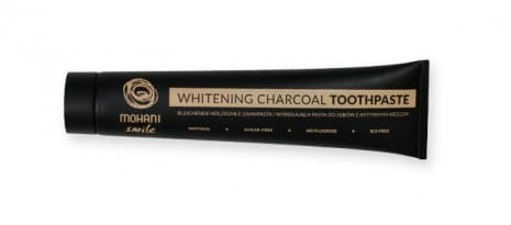 Pasta do zębów Mohani Smile oprócz węgla aktywnego zawiera ksylitol, stewię, olejek eteryczne z mięty pieprzowej i drzewka herbacianego, ekstrakt z goździka, ekstrakt z czarnej porzeczki.