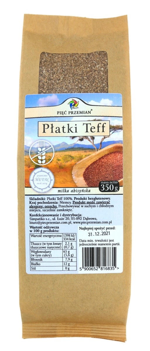 PŁATKI TEFF BEZGLUTENOWE 350 g - PIĘĆ PRZEMIAN