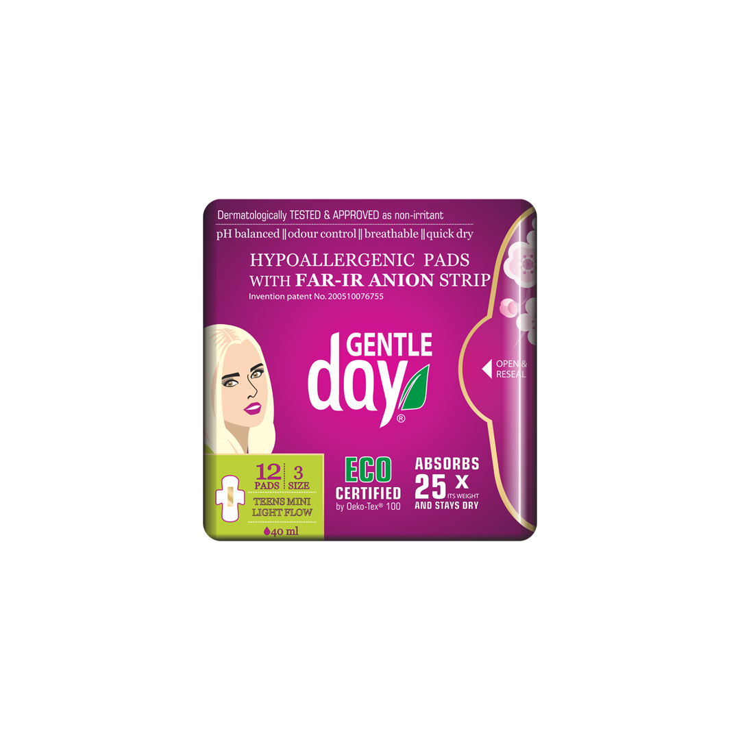 PODPASKI HIGIENICZNE MINI Z PASKIEM ANIONOWYM (TEENS) 12 szt. - GENTLE DAY
