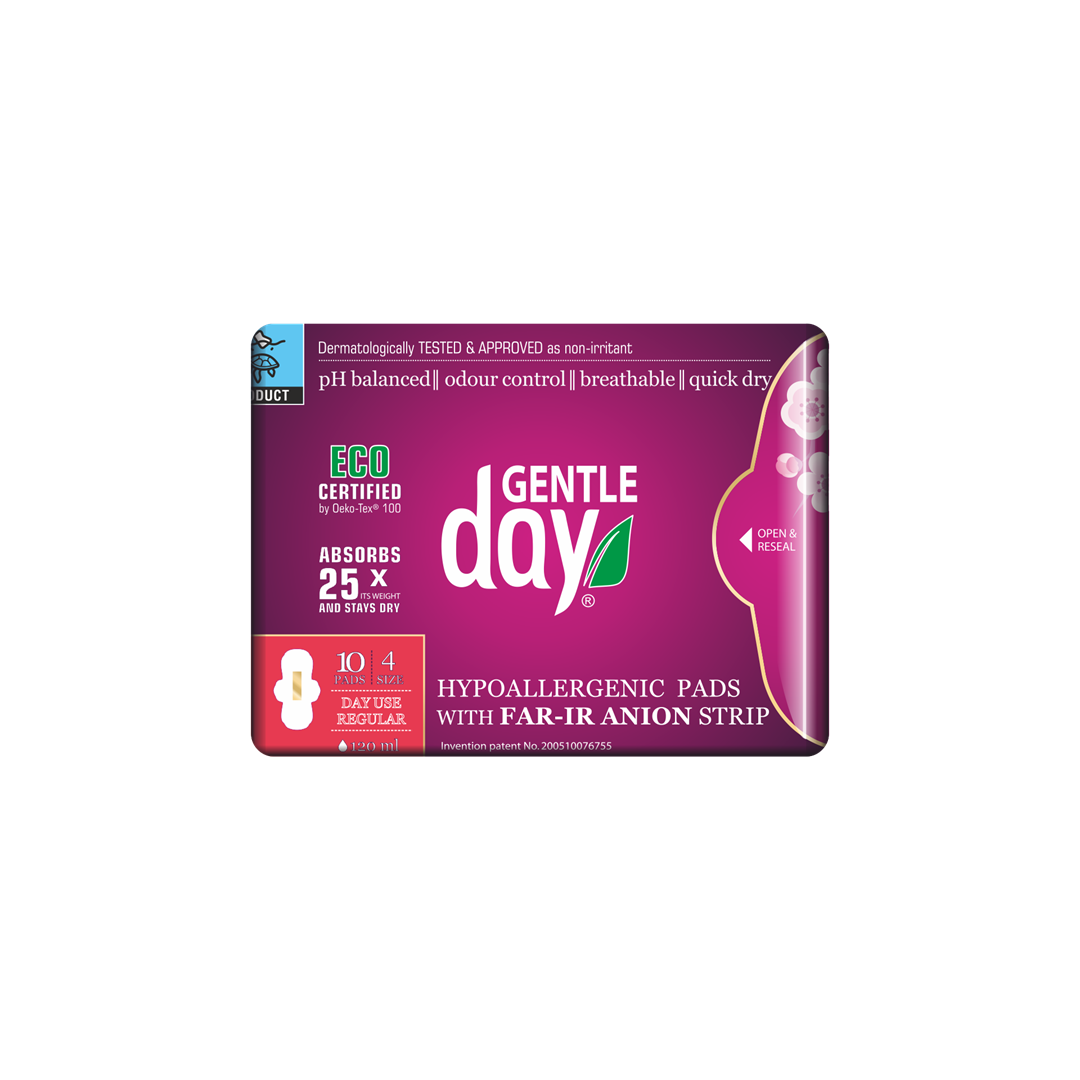 Podpaski na dzień przeznaczone do stosowania podczas regularnych menstruacji. Boczne ścianki chronią przed przeciekaniem. Nie powodują dyskomfortu i nie podrażniają skóry. Polecane przy różnego rodzaju dolegliwościach podczas menstruacji. Podpaski doskonale przepuszczają powietrze, zapewniają suchą powierzchnię, a pasek anionowy zatrzymuje rozprzestrzenianie się bakterii wewnątrz podpaski.