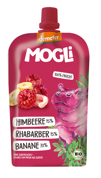 PRZECIER OWOCOWY BANAN - MALINA - RABARBAR BEZ DODATKU CUKRÓW DEMETER BIO 120 g - MOGLI