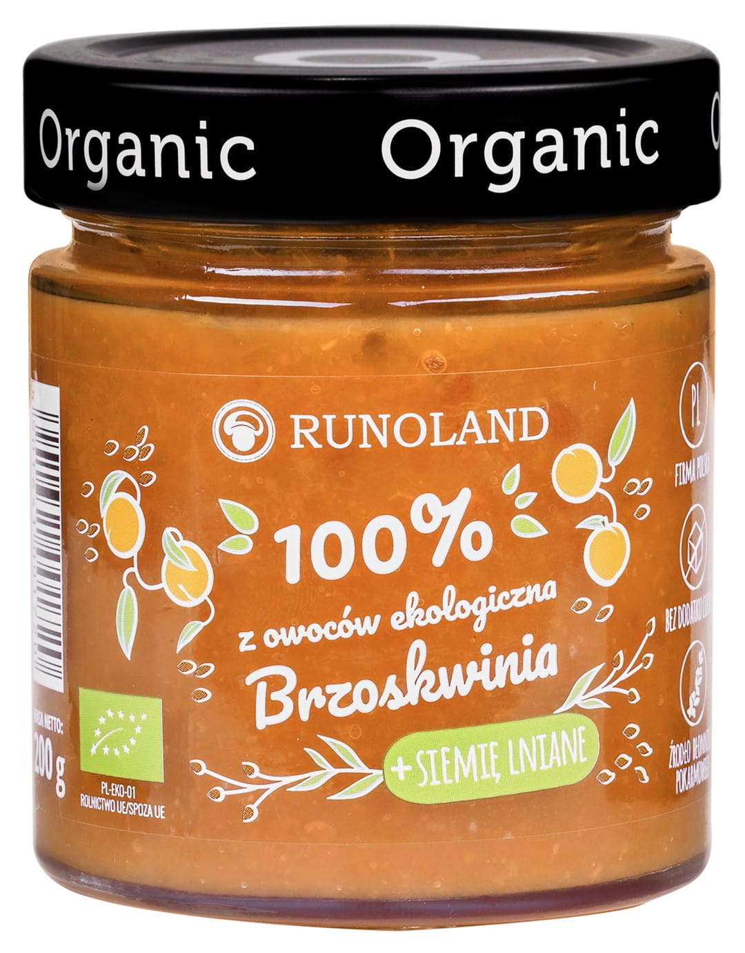 SŁODKA PRZEKĄSKA BRZOSKWINIA Z SIEMIENIEM LNIANYM BIO 200 g - RUNOLAND