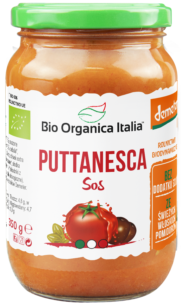 SOS POMIDOROWY Z OLIWKAMI I KAPARAMI PUTTANESCA DEMETER BIO 350 g - BIO ORGANICA ITALIA