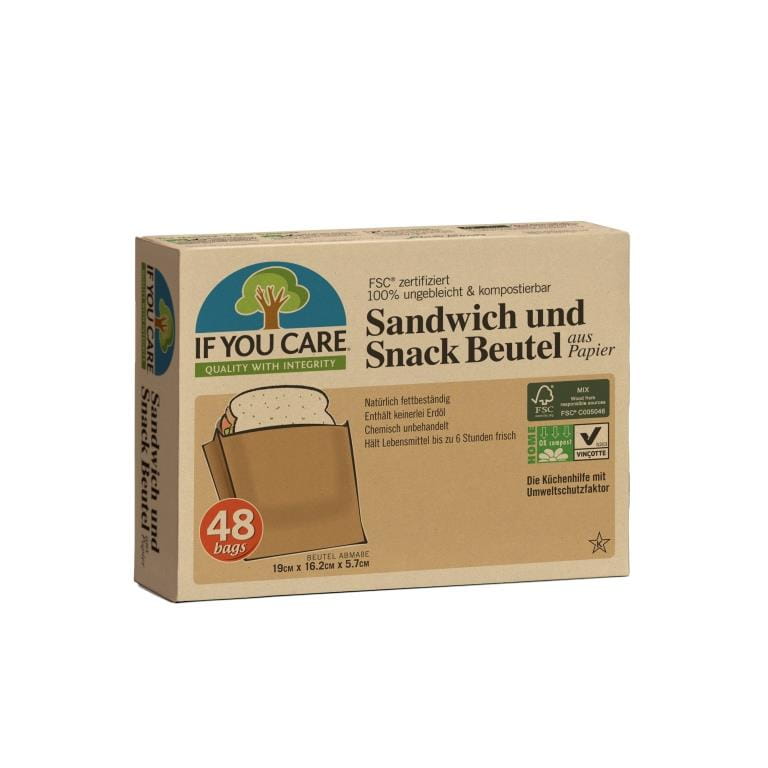 Papierowe torebki na kanapki i przekąski nie są powlekane woskiem ani silikonem, odporne na tłuszcz. Bezpiecznie przechowają ciastka i kanapki z masłem czy majonezem. To znakomity wybór, jeśli potrzebujesz lekkich i odpornych torebek śniadaniowych. Ekologiczne, biodegradowalne i kompostowalne - po użyciu można je bezpiecznie wrzucić do pojemnika na bioodpady lub domowego kompostownika. Jeśli nie chcesz zaśmiecać środowiska plastikowymi torebkami, używaj kompostowalnych torebek If You Care.