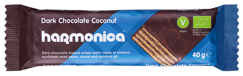 WAFELEK Z SAMOPSZY Z KREMEM KOKOSOWO - KAKAOWYM W POLEWIE CZEKOLADOWEJ BIO 40 g - HARMONICA