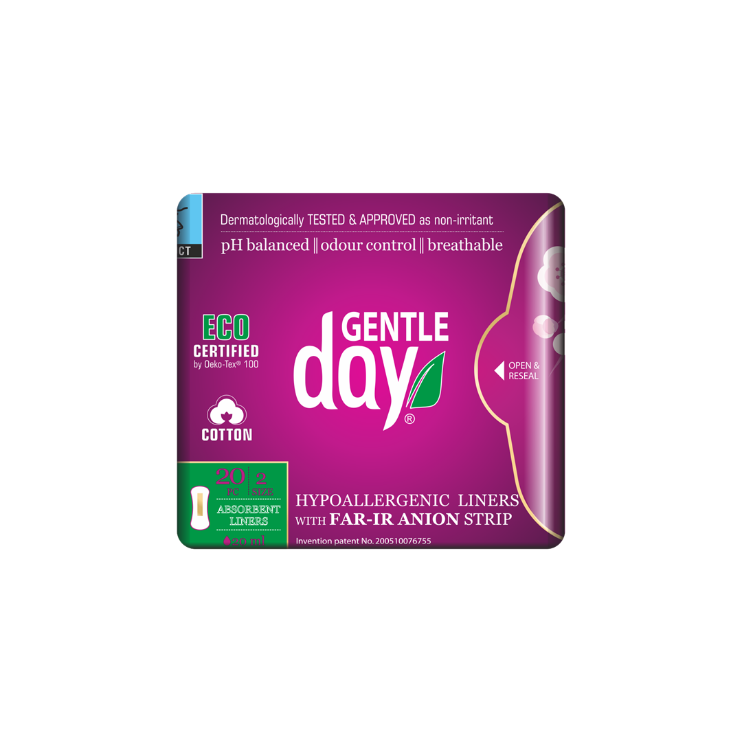 WKŁADKI HIGIENICZNE Z PASKIEM ANIONOWYM I WARSTWĄ WCHŁANIAJĄCĄ WILGOĆ 20 szt. - GENTLE DAY