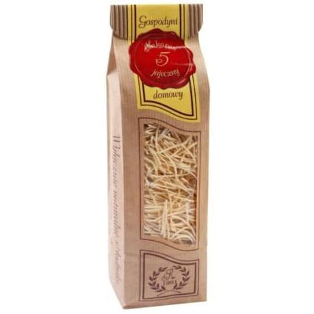 Tradycyjny makaron wałkowany, pięciojajeczny. Świetnie smakuje jako dodatek do tradycyjnego rosołu, z powodzeniem można stosować również do sałatek lub słodkich dań z sezonowymi owocami i słodką śmietanką.