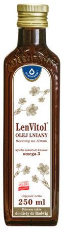 Olej lniany LenVitol® powstaje tradycyjną metodą tłoczenia na zimno. Charakteryzuje się wysoką zawartością tłuszczów wielonienasyconych oraz kwasów tłuszczowych omega-3. Zawiera wielonienasycone kwasy tłuszczowe: kwas alfa-linolenowy (omega-3) i kwas linolowy (omega-6). Zastępowanie w diecie tłuszczów nasyconych tłuszczami nienasyconymi pomaga w utrzymaniu prawidłowego poziomu cholesterolu we krwi [jedno i wielonienasycone kwasy tłuszczowe są tłuszczami nienasyconymi]. Utrzymanie prawidłowego stanu zdrowia wymaga zrównoważonego odżywiania i prowadzenia zdrowego trybu życia.
